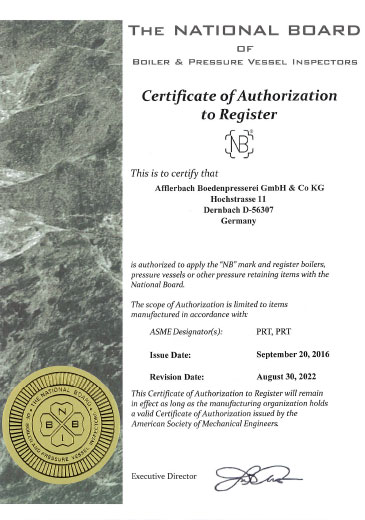 ABS, AIB, APAVE, Service des Mines, APRAGAZ, Association Vincotte, DB, ISPESL, POLISH & RUSSIAN MARITIME REGISTER OF SHIPPING, SGS-ControllCo, K