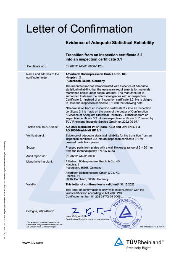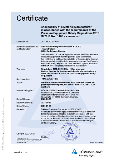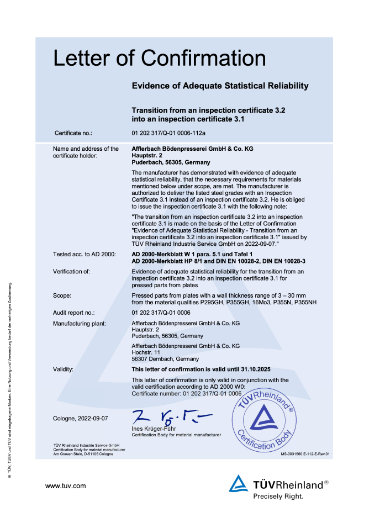 to TRB 100 (AD 2000-W0) / TRD 100, TRB 200 (AD 2000-HP0) / TRD 201, DIN EN 729-3 and PED 97/23/EC
