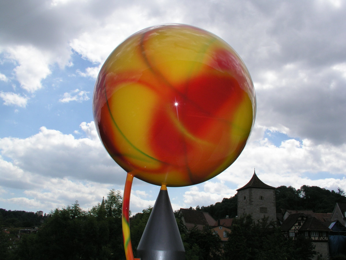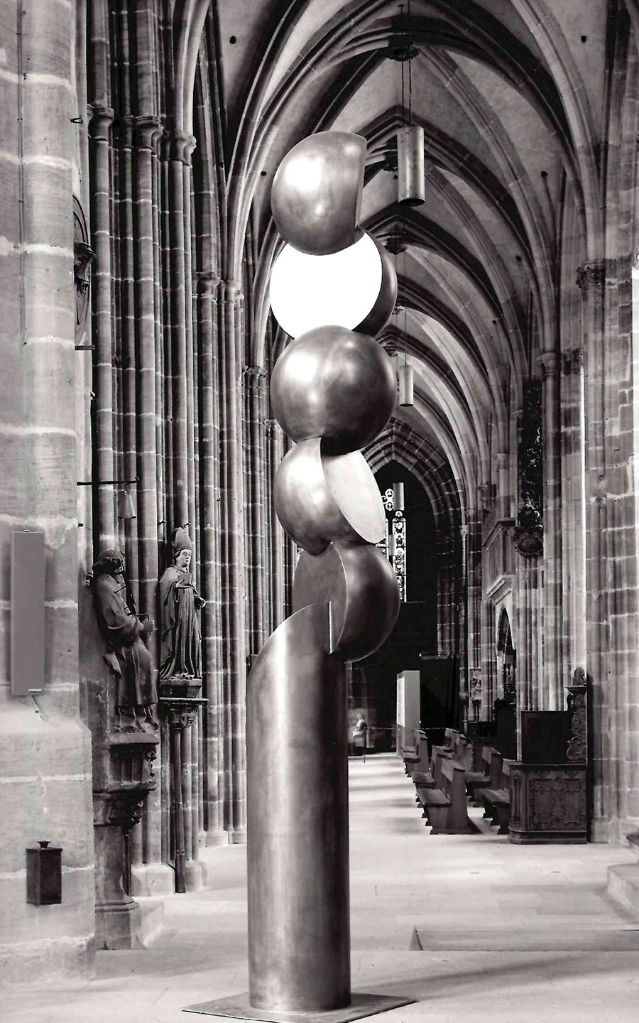 Heinz Heiber, Bildhauer in Nürnberg, hat für die von ihm geschaffenen Kunstwerke auch Afflerbach-Halbkugelböden und Afflerbach-Segmente aus den verschiedensten Werkstoffen verwendet.